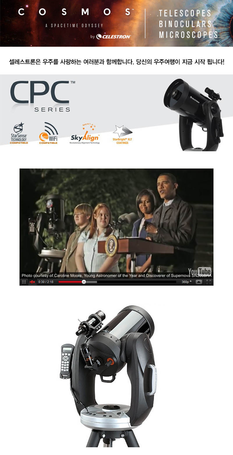 오바바 대통령과 영부인이 셀레스트론 CPC800 망원경으로 관측하는 모습이 보도되었습니다.