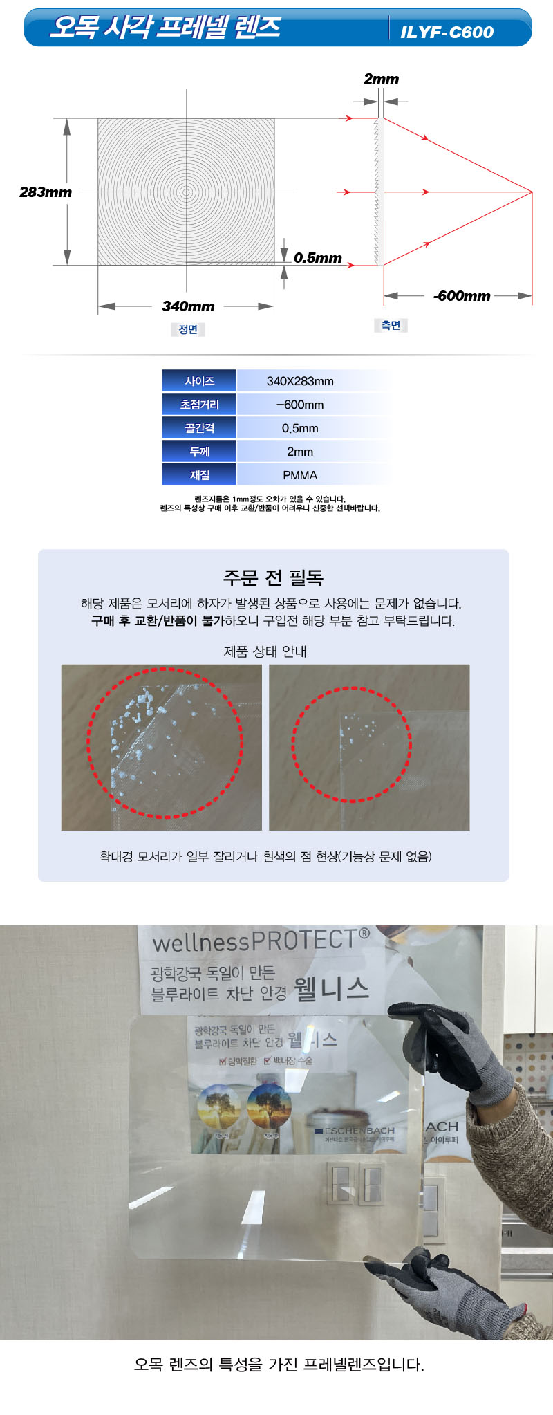 > 오목 사각 프레넬렌즈 ILYF-C600