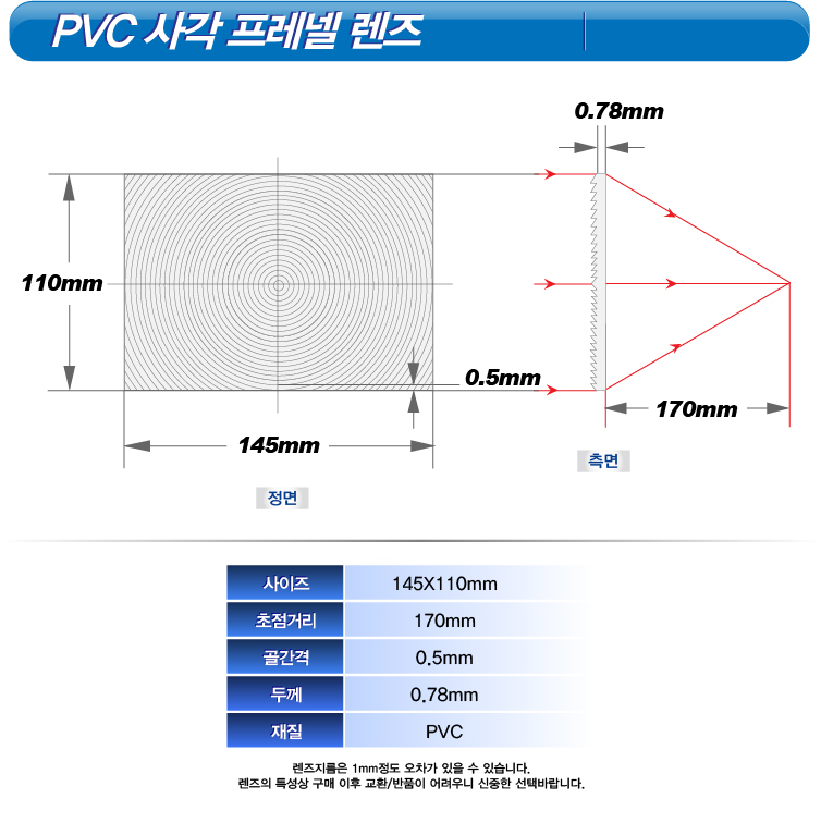 PVC 프레넬 렌즈 (145X110mm / 170)