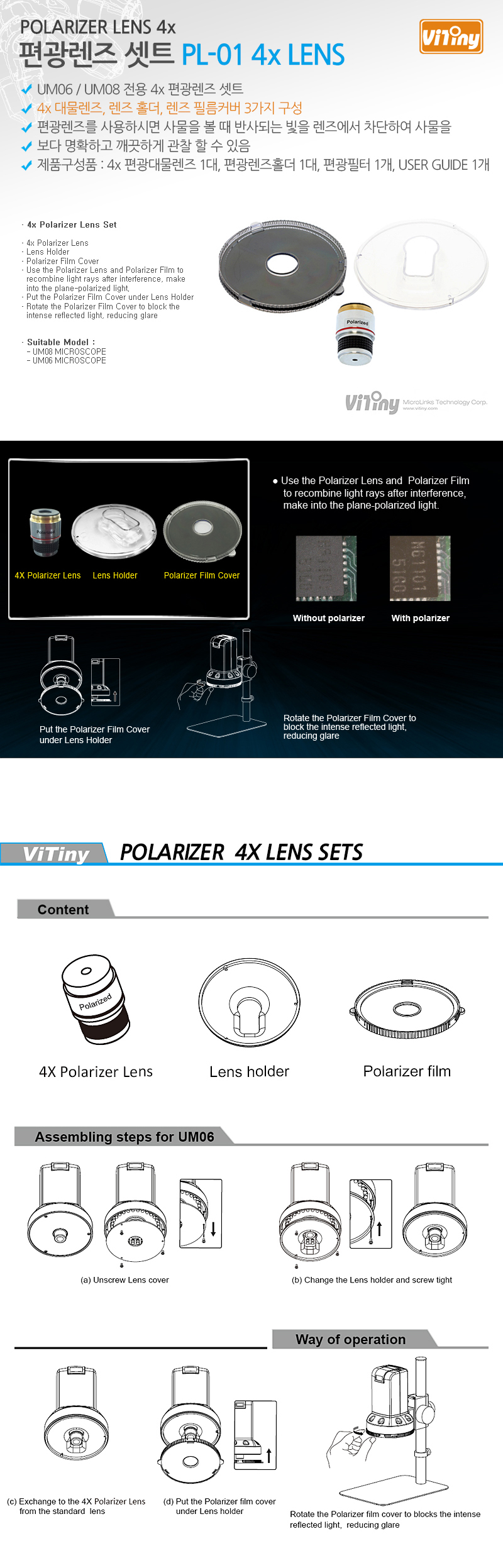 > Vitiny 편광 렌즈 세트 UM08전용 4배율 Polarizer 현미경 액세서리