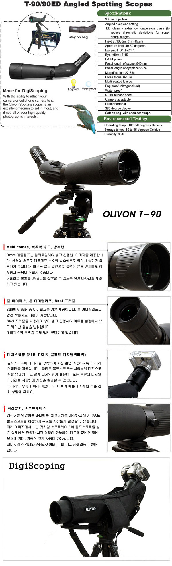 본 제품은 구경 90mm ED 렌즈를 장착한 고급형 대형 필드스코프입니다.